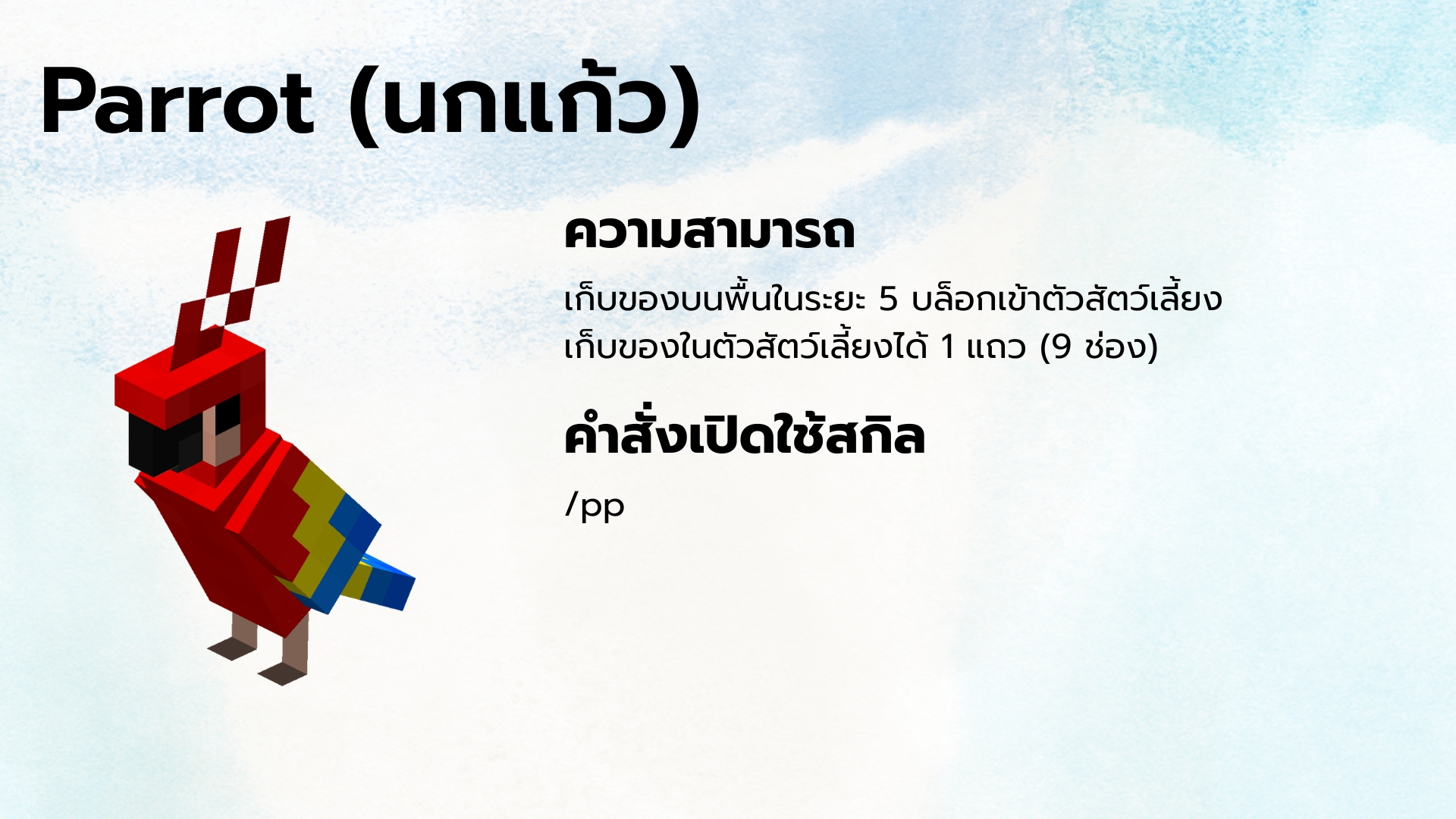 /pp เป็นการเปิดการช่วยเก็บของสำหรับสัตว์เลี้ยงที่มี Skill เก็บของ